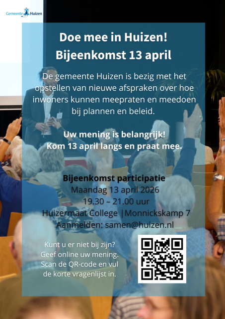 Doe mee in Huizen! Bijeenkomst op 13 april a.s.